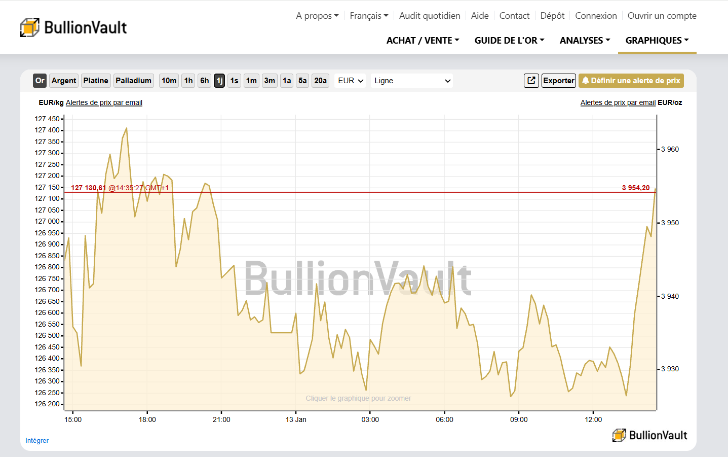 COURS DE L'OR ET DE L'ARGENT AUJOURD'HUI 14 Janvier 2026 AU COMPTOIR UNIVERSEL DE L'OR